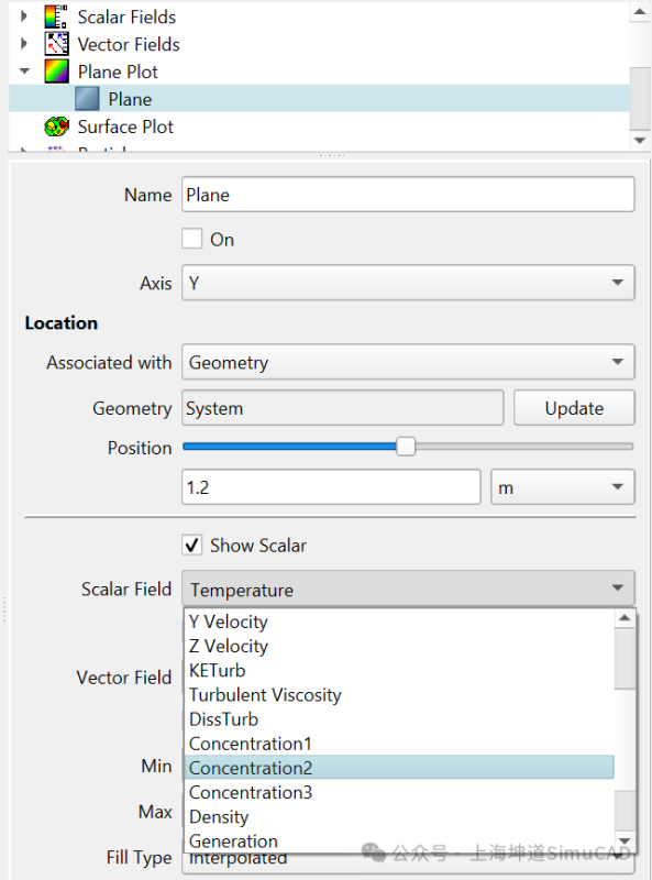 - 计算完成后,结果将出现在后处理的下拉菜单和数据表格中。