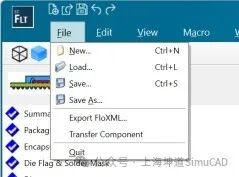 - 用户可创建新的封装并保存到磁盘,或加载已有设计。已加载的设计可导出为 *.floxml文件,或直接导入到Simcenter Flotherm 中(从Project Manager中打开)。