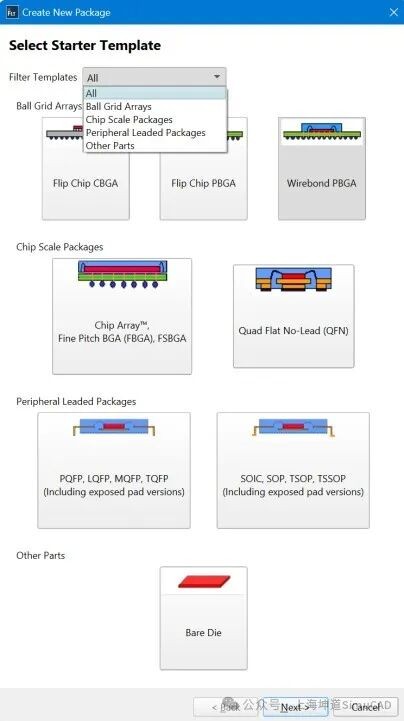 - 新设计可基于模板快速生成,这些模板涵盖主流IC元件厂商采用的通用制造和设计规则。只需要输入少量参数,就可以生成较为准确的封装模型。