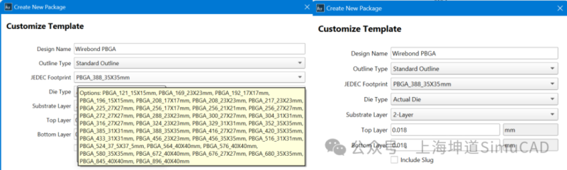 · 选择特定模板(Outline Type选择Standard Outline)来定义封装的整体尺寸和内部结构细节,或者从空白页面开始(Outline Type选择Non-standard Outline)。